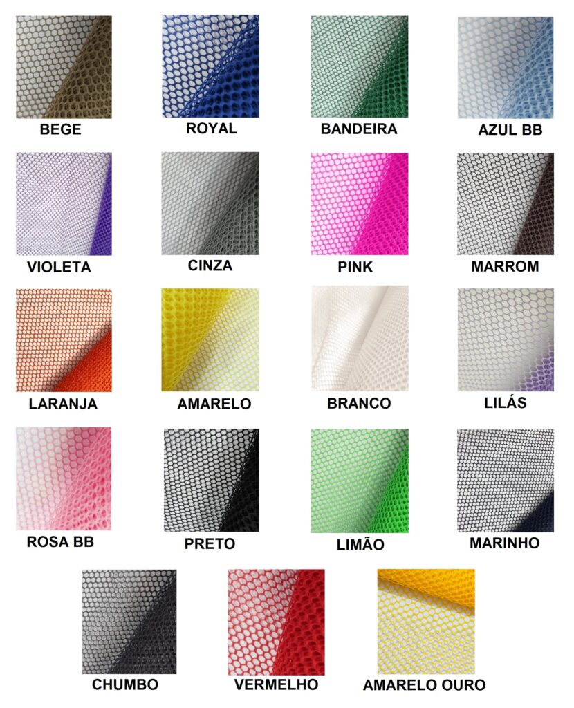 A Tela Voley é um tecido de Poliéster que possui uma trama em formato de colmeia, trazendo um acabamento exclusivo e diferenciado as peças confeccionadas, possui alta durabilidade e resistência, suas principais aplicações- Forração de Bolsas e Mochilas;