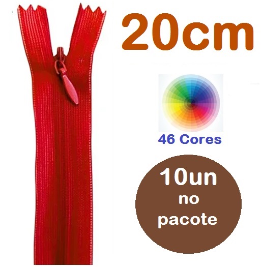 Ziper Invisível Nylon 20cm Pacote com 10un